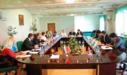 符拉迪沃斯托克国立经济与服务大学的领导与绥芬河市政厅代表举 行会谈